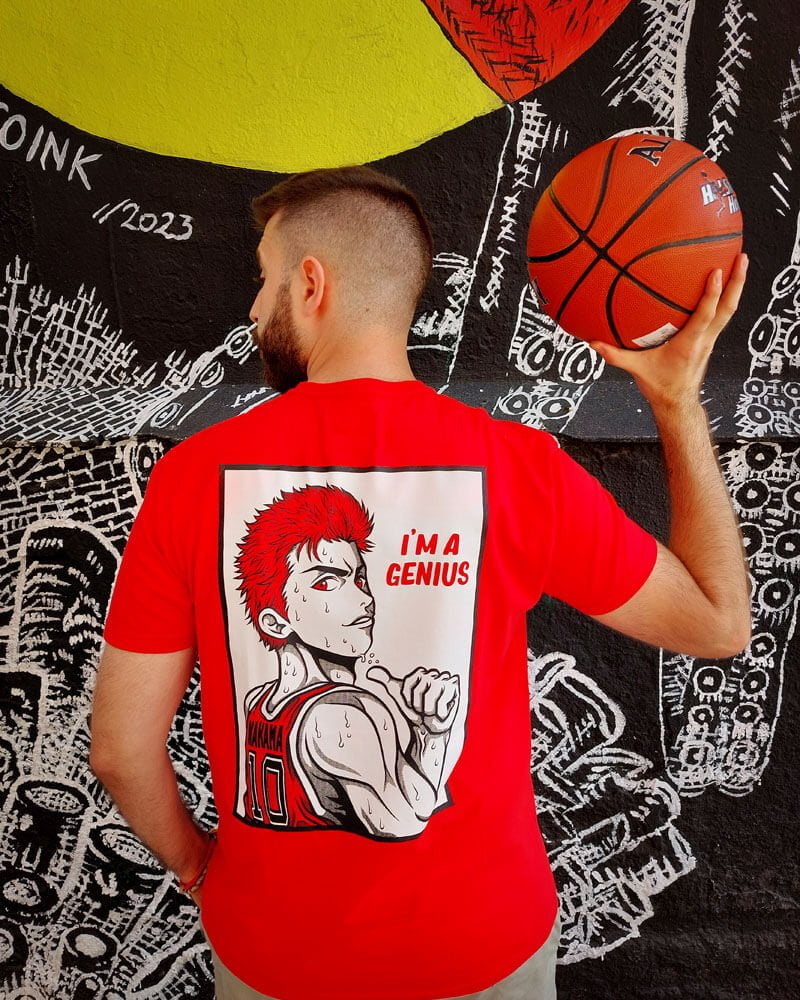 Red Genius T-Shirt von der Anime-Marke Nakama Clothing. Ich bin der König der Spokons, ich werde das Spiel gewinnen, damit das Mädchen, das ich mag, mich bemerkt.