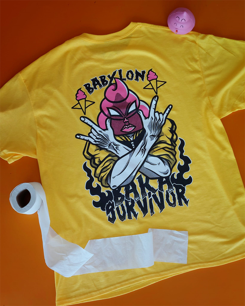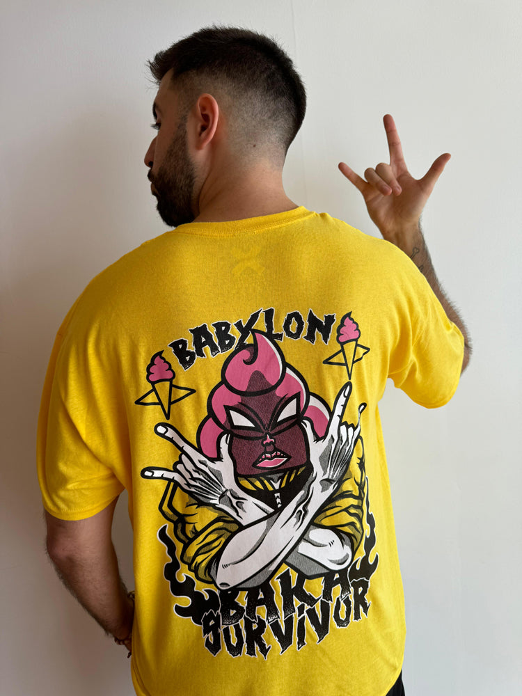 Camiseta Ice Cream Power de la marca de anime Nakama Clothing. Llegó el poder de Babylonia al campo de batalla! Espera un momento, eso no es una mojón enorme?! ¡NO! es un helado de fresa!!! ¿¡Qué?!