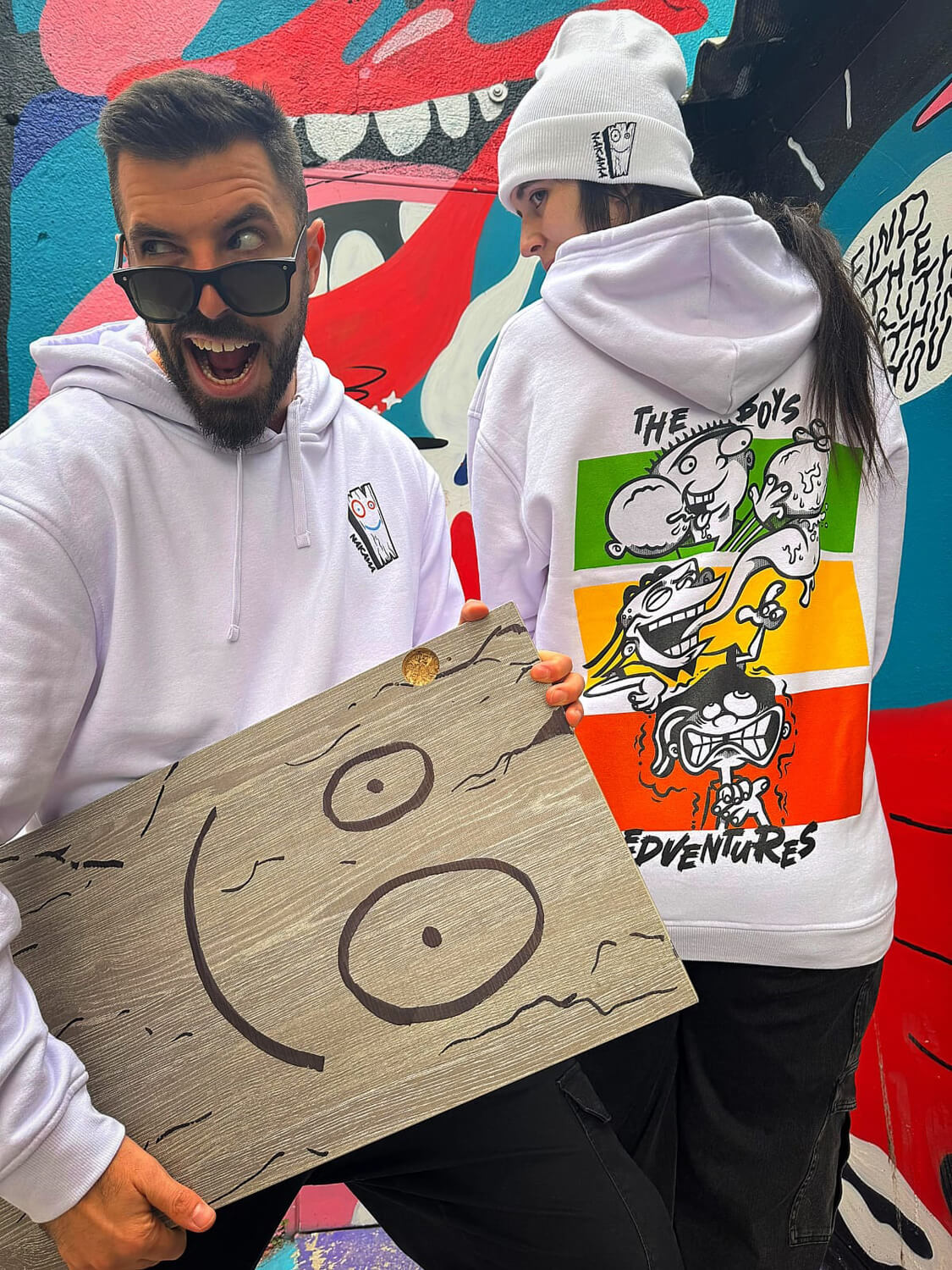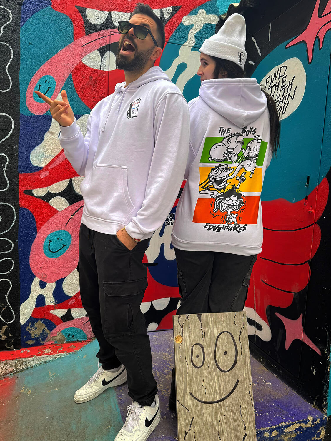 Sudadera Edventures de la marca de anime Nakama Clothing. Los tres amigos traviesos vuelven a sus viejas andanzas para conseguir el caramelo más adictivo del mercado.