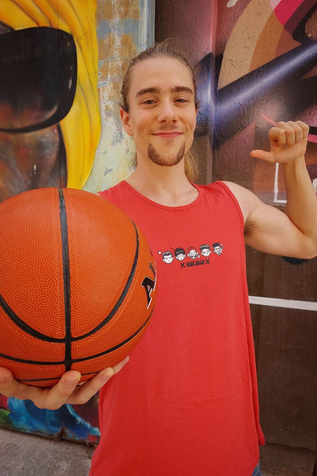 Débardeur Red Genius de la marque d’anime Nakama Clothing. Je suis le roi des spokons, je gagnerai le match pour que la fille que j’aime me remarque.