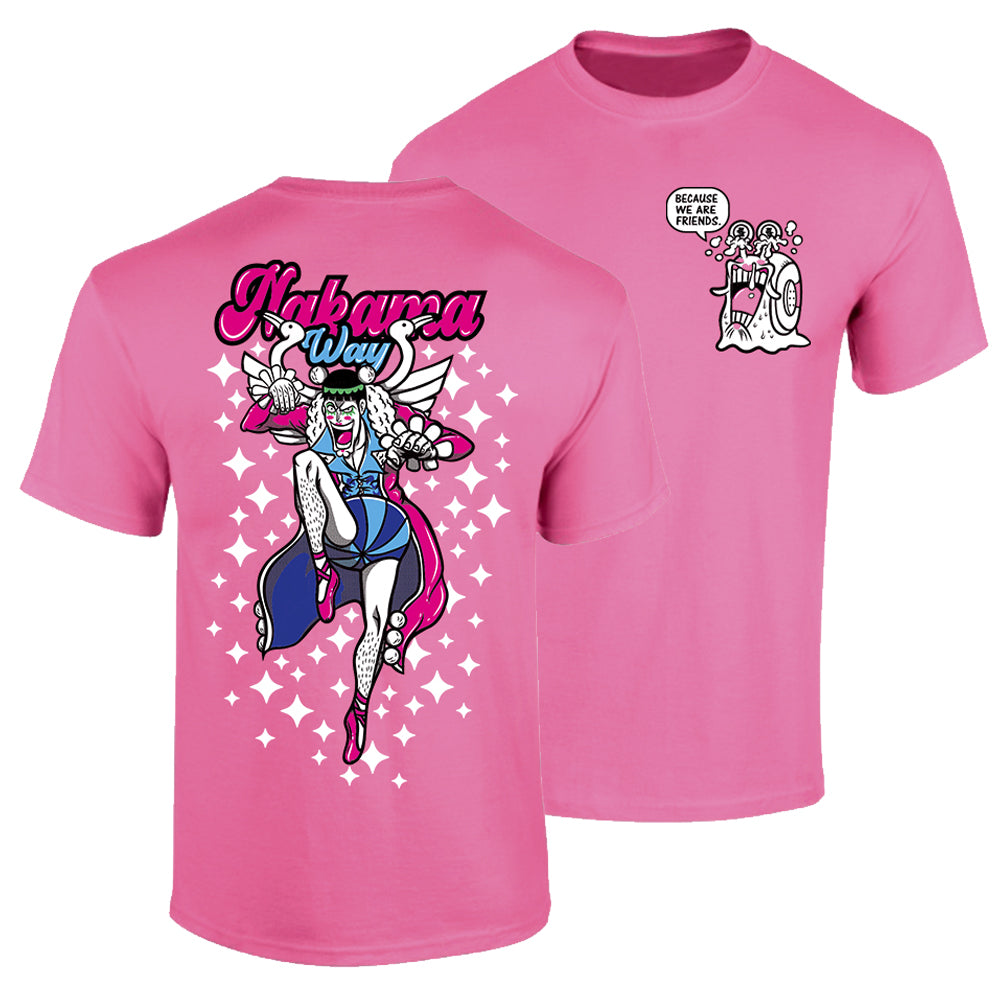 Nakama Way T-shirt and cup from the anime brand Nakama Clothing. The king of drag queens is here to save the day for all nakamas. Okama Way!